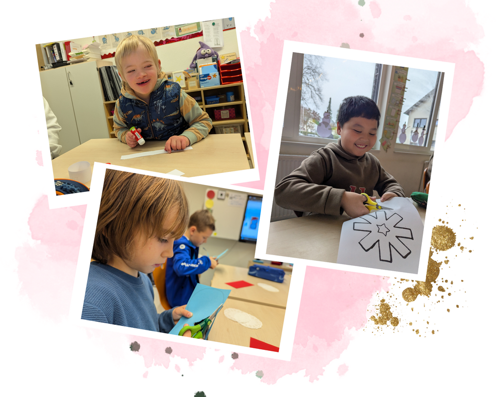 Schneemänner, Lebkuchenmänner und - frauen, Zuckerstangen, Schneeflocken, ... Nach dem vergangenen Freitag erstrahlen die Fenster im weihnachtlichen und winterlichen Glanz. Fleißig wurde gebastelt und nebenbei gab es in der Aula selbst gebackene Waffeln von den Eltern.